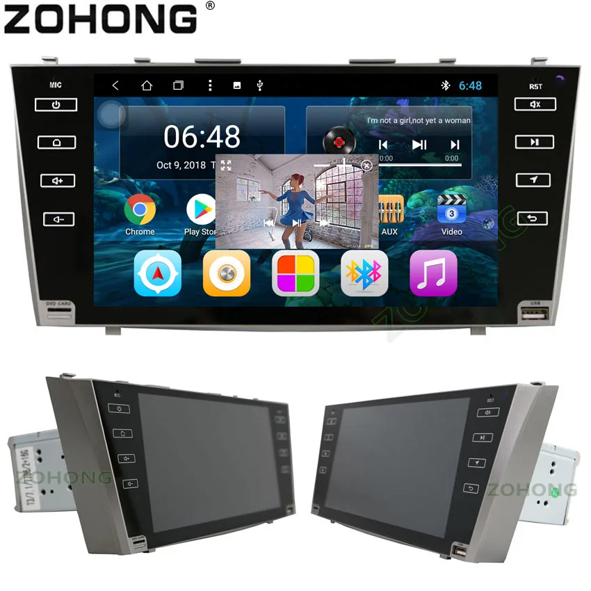 ZOHONG 2 din 9inch octa coreAndroid 8.1 Car DVD player For Toyota CAMRY V40 AURION2007-2011 GPS NavigationStereo Radio BT wifi MAP It can be installed on the followings cars: For Toyota Camry V40 2007 2008 2009 2010 2011 For Toyota AURION V40 2007 2008 2009 2010 2011 Note: 1.This item don`t have DVD/CD Function,but it supprot MP5 and Mobile hard disk (1TB) . If you think it is ok,you can buy! thanks! 2.After place the order,please give me your car console picture and tell me what is the model name of your car.Thanks. Remind: Dear buyers friends! this product has a total of 2typesto choose from : A typesisIntegratedplayer(screenandframeinthesamepart) .Btypesis frame+universalplayer . 1. OS: Android 8.1version. 2. T8Octa Core 1.8GHz, RAM: 2GB DDR3, ROM /Nand(flash): 32GB.T3Quad Core 1.6GHz, RAM 1GB, ROM 16GB, you can place the order according to your requirement .Quad Core2G+16G Add : 15USD . 3. Display: 9 inch HD1024*600 Capacitive Touch Screen. 4. Support PIP function; Support Dual screen function -- where you can simultaneously watch two programs ( for example, navigation and YouTube ) 5. Radio: TDA7786 Tuner with RDS, 30 Preset Radio Stations. (FM:3*6, AM:2*6) 6. Language:English,Russian,German,French,Italian,Spanish,Portuguese,Polish,Turkish, Arabic,Danish,Dutch,Swedish,Hebrew 50 kinds of languages. 7. Bluetooth: Support phonebook、call log、A2DP music play,and Bluetooth data transfer. 8. Support RCA out ( FR/FL/Subwoofer audio-out ), AUX RLV-in, Rear Camera in, Video OUT*2 ( T3 Quad Core Support ; T8 Octa Core Not Support Video-OUT). 9. Support Steering Wheel Control. 10. Built-in WiFi Adapter, 3G(Support WCDMA ,3G Dongle),Download More APP from Android market. 11. Double USB Cable For 3G connector and USB. 12. Supporting HD1080P, and 3D background, Support 1TB Mobile hard disk. 13. EQ:Support Treble/mid/bass adjust.Jazz,Pop,Classic,and various sound modes are available. 14. Support I-GO; Sygic; Navitel maps, Dual Zone Function can play music or movie when navigation. ( Only for Russia to provide New version Navitel 9.10.2222 ,Map20190806) ,other countries I-GO or Sygic maps. - Split Screen function : - Picture in picture function : A types : B types: The storage capacity of RAM ROM displays on the device will less than writen,because Android main program, music, video and installed applications have taken up part of the memory capacity。 (optional)1: Digital TV DVB-T2 BOX--------add 65$ (optional)2: Digital TV ISDB-T BOX---------add 40$ (optional)3: USB DVR+16GB C10 Card----add 25$ Note:If you need the above optional functions, please inform us (leave us message)after you place the order, we will adjust the price for your order, then you make the payment.
